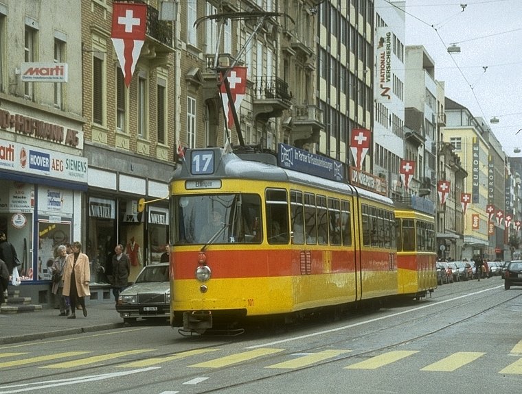 Hersteller: Schindler/BBC, 1971 (Serie 101-108) Länge: 19,40 m Breite: 2,20 m Masse: ca. 22,4 t Stundenleistung: 2 x 150 kW Spurweite: 1000 mm Achsfolge: B'2'B'