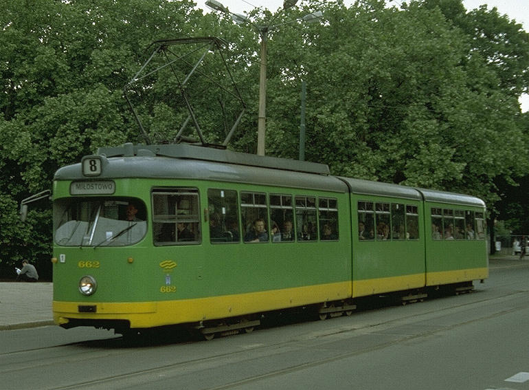 Hersteller: DUEWAG, 1959 (1998 ex Düsseldorf 2558) Länge: 26,65 m Breite: 2,35 m Masse: 25,4 t Stundenleistung: 2 x 115 kW Spurweite: 1435 mm Achsfolge: B'2'2'B'