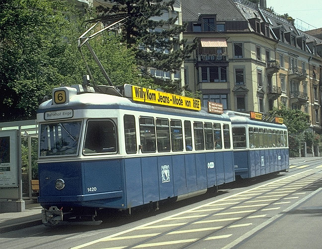 Hersteller: SWS/MF Oerlikon, 1959 (Serie 1416-1420) Länge: 13,95 m Breite: 2,20 m Masse: ca. 23 t Stundenleistung: 4 x 63 kW Spurweite: 1000 mm Quelle: VBZ