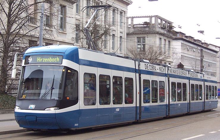 Hersteller: Bombardier, 2002 (Serie 3001-3006) Länge: ca. 36 m Breite: 2,40 m Masse: 39,2 t Stundenleistung: 5 x 125 kW Spurweite: 1000 mm Achsfolge: Einzelradantrieb Quelle: VBZ